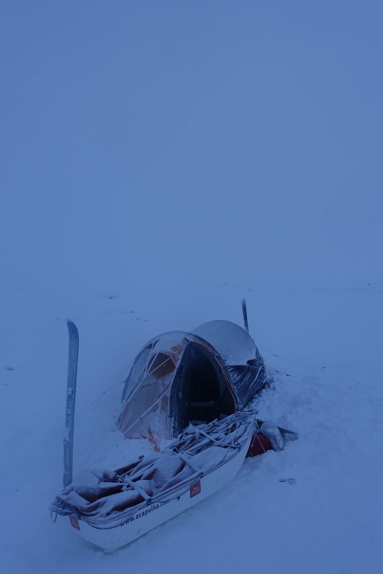 Une rencontre avec ses immensités blanches, une météo difficile, un vent omniprésent, la solitude pendant plusieurs jours, des rencontres fortes, le soleil qui réapparaît le dernier jour depuis ce camp magnifique, toujours ce plaisir de skier des jours entiers...