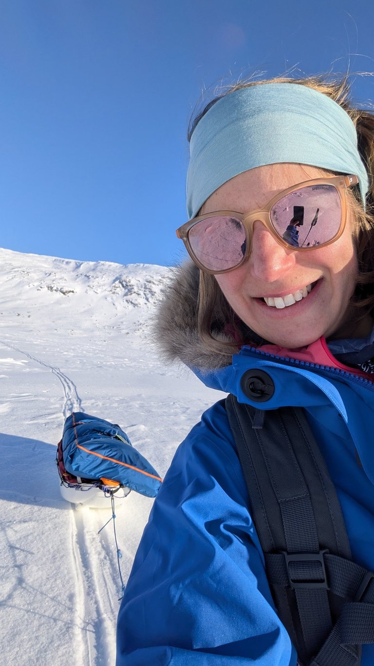 Le bonheur d'être là. Et la gratitude pour Are, grâce à ses conseils je me suis sentie bien plus en harmonie avec les éléments, à l'aise et en sécurité même dans des conditions plus difficiles. Quand naviguer à la boussole dans le blanc face au vent n'est pas un enfer mais juste une étape du voyage. Car les conditions changent, et le soleil revient !