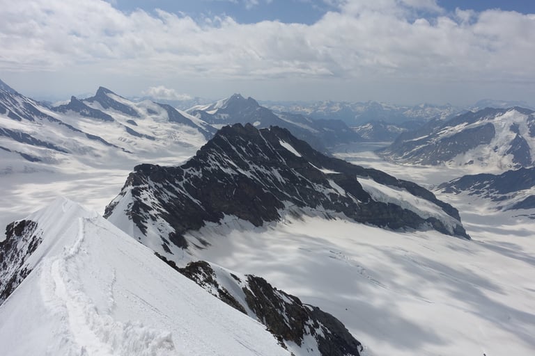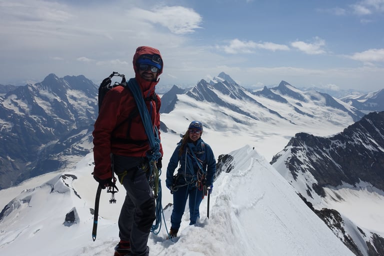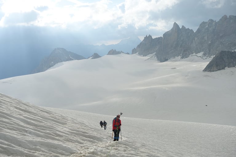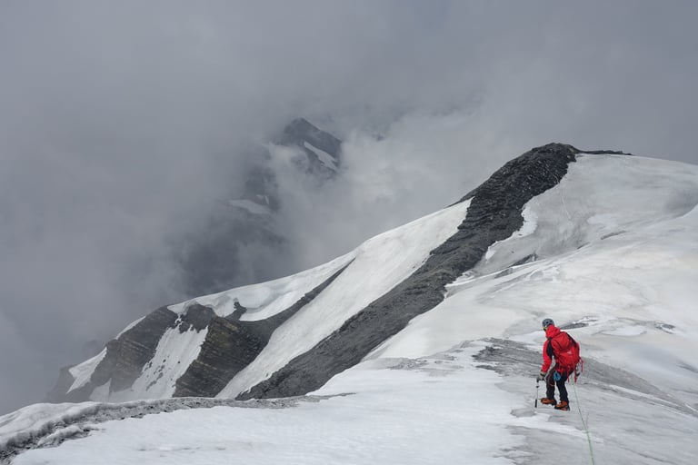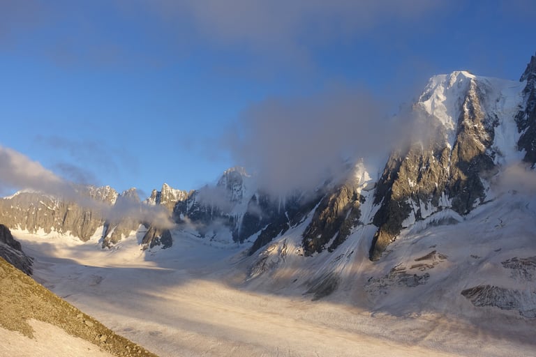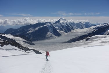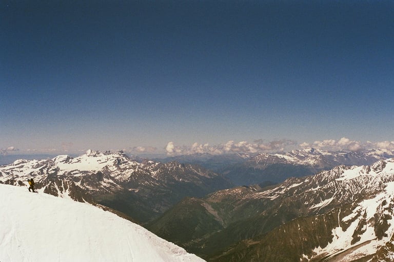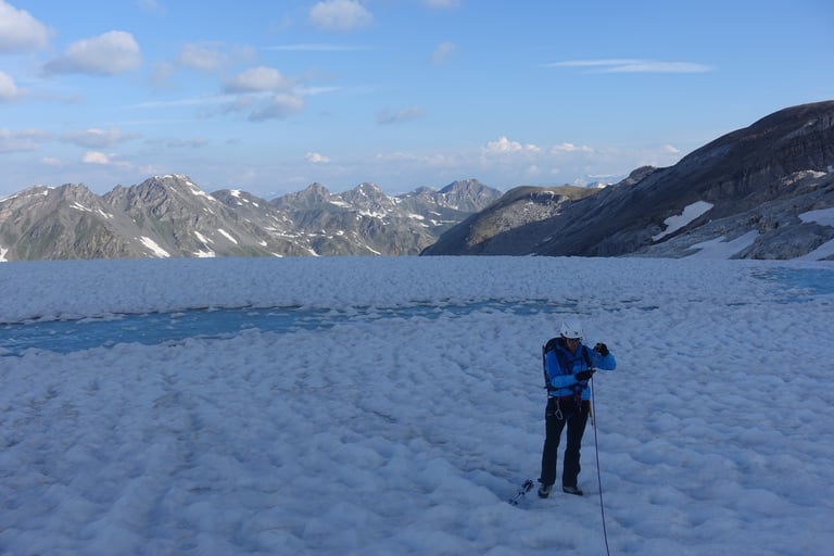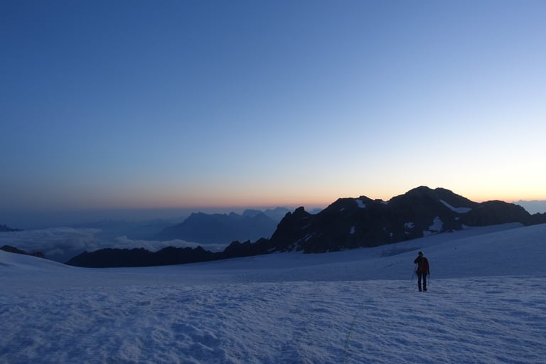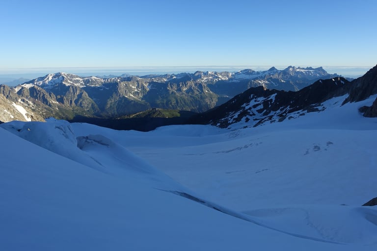 Mon attirance pour les glaciers et ces hautes montagnes m'a menée vers l'alpinisme. La beauté des paysages, l'intensité et le partage avec des amis. Voici quelques aventures entre la France et la Suisse. Toutes les sorties sont réalisées en autonomie entre amis.