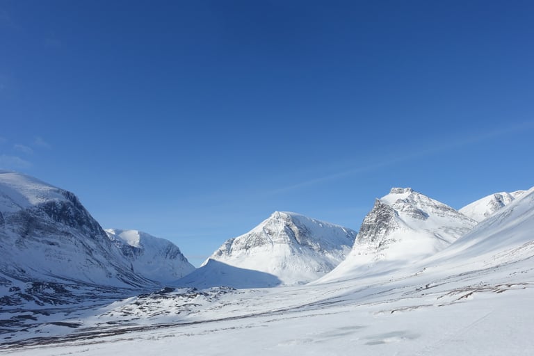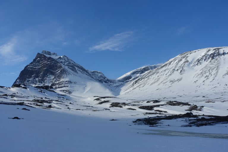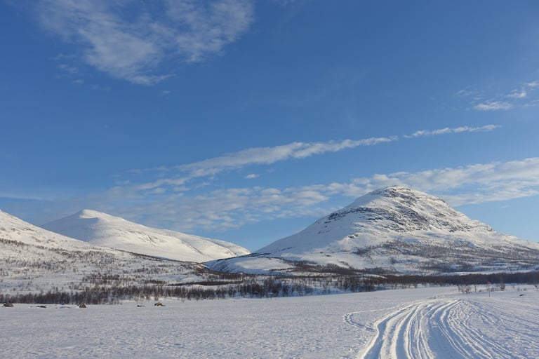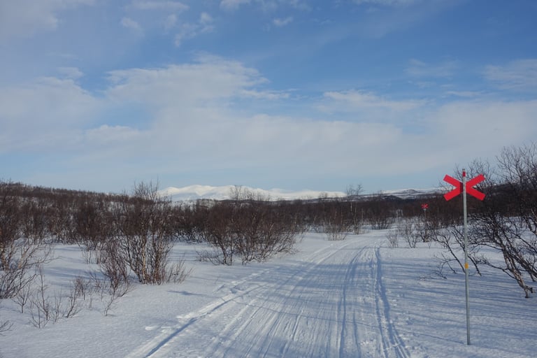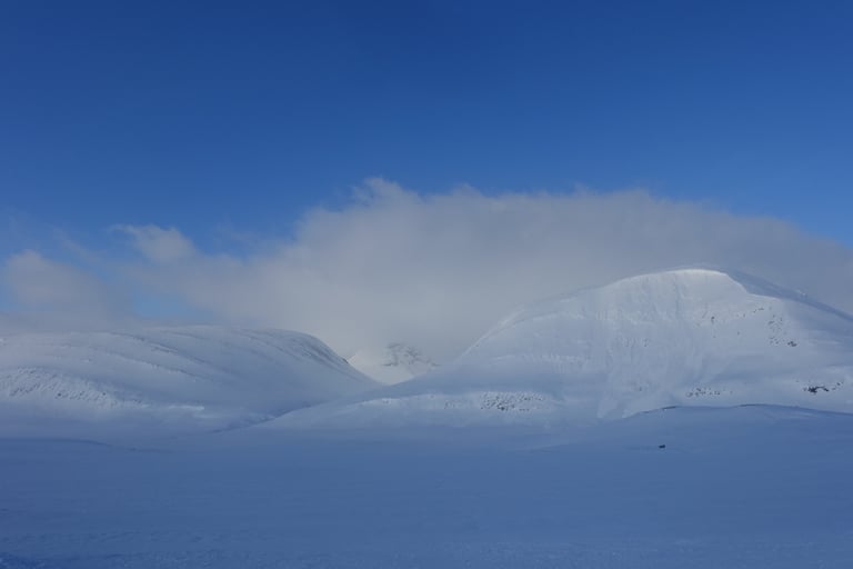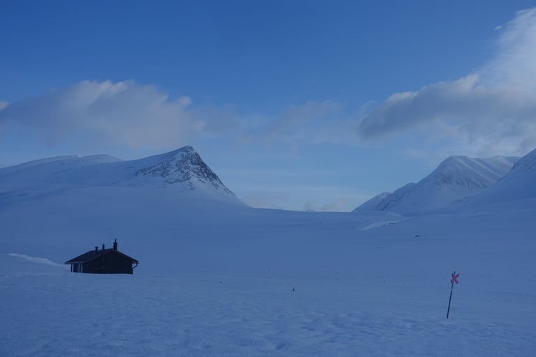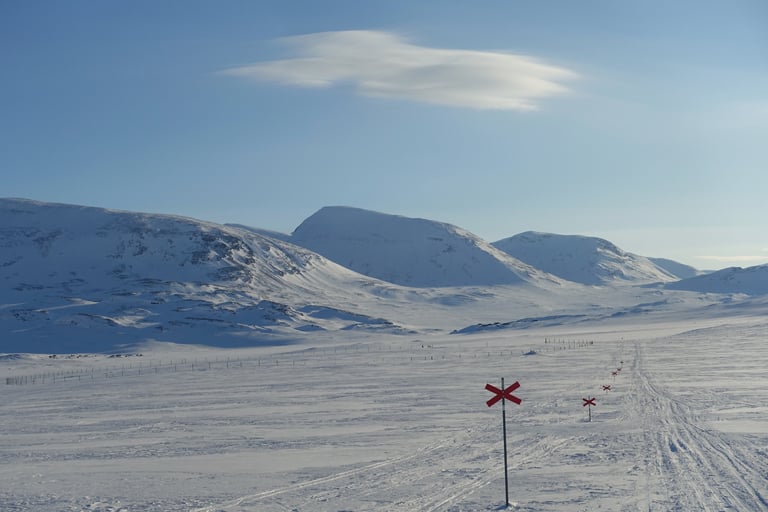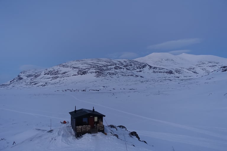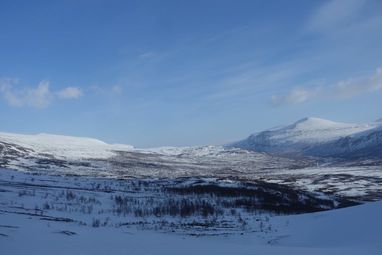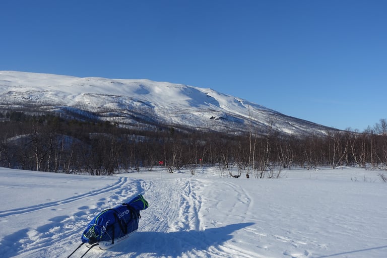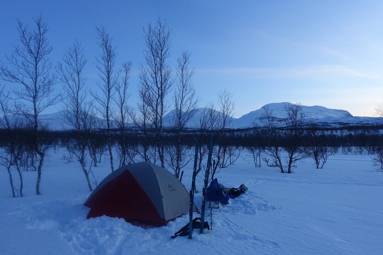 Après plusieurs mois dédiés aux longues sorties en ski de fond pour la Vasaloppet, l'envie de faire du ski de rando était très forte. J'ai donc organisé une expédition hybride. Une base en itinérance en skis nordiques avec la tente et la pulka. Avec l'idée de faire des camps de base pour du ski de rando. Pour le tracé, ce sera presque sans hésitation le Kungsleden. Je m'étais promise d'y revenir l'hiver en 2014, il était temps ! Départ pour 14 jours seule entre Abisko et Nikkaluokta. Du 13 au 26 mars 2022.