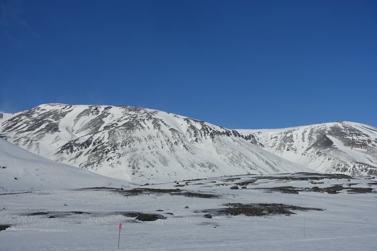 Retour du ciel bleu. C'est sublime, tout est blanc et bleu, je suis époustouflée ! L'étape sera double encore aujourd'hui, avec la station de montagne de Kebnekaise en destination. La large vallée de Sälka laissera place à des montagnes plus abruptes à l'approche du massif. Le vent souffle déjà fort en montant le col, puis la descente se fera poussée comme en kite. Si c'est très drôle sur le plat, cela devient terrifiant en descente avec le manque de neige et les rochers apparents. J'arrive soulagée à Kebenkaise. La tempête est annoncée pour plusieurs jours, je m'installe donc confortablement. La visite du sauna s'impose évidemment.